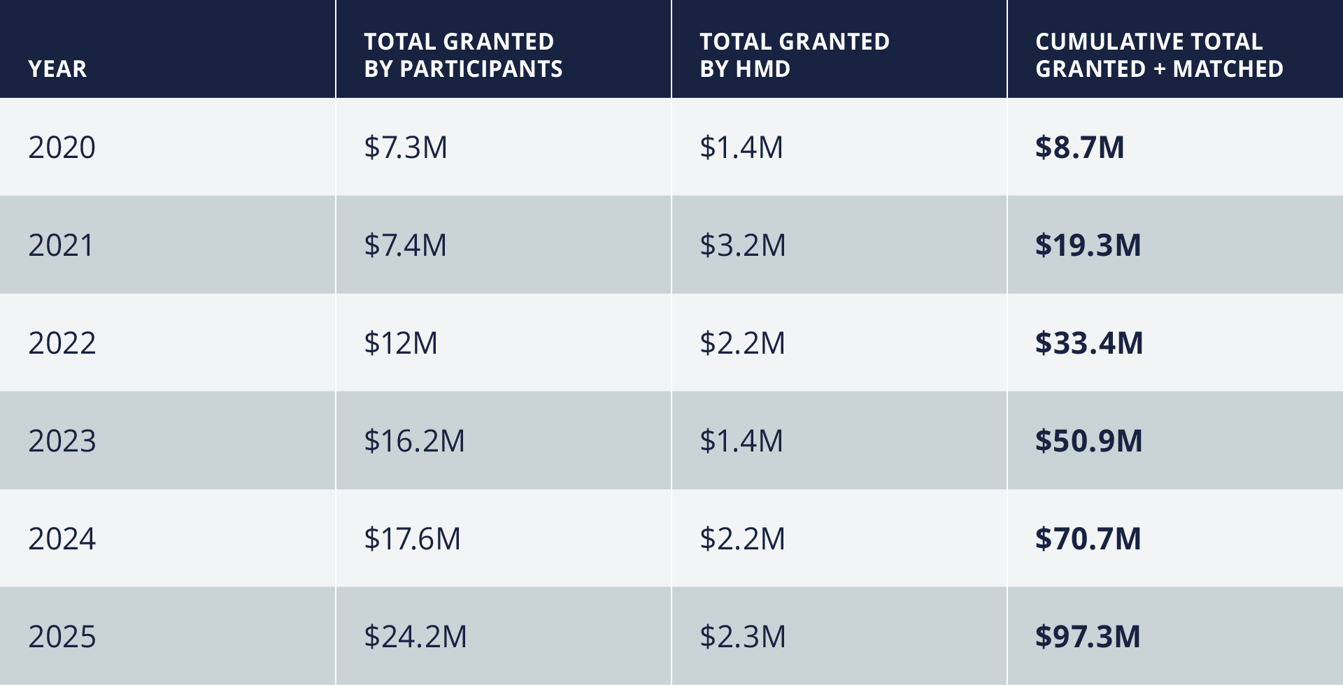 Since 2020, #HalfMyDAF has motivated and accelerated DAF giving. Our #HalfMyDAF challenge participant’s DAF giving has increased every year, and we look forward to furthering our progress and growing our impact in 2026.